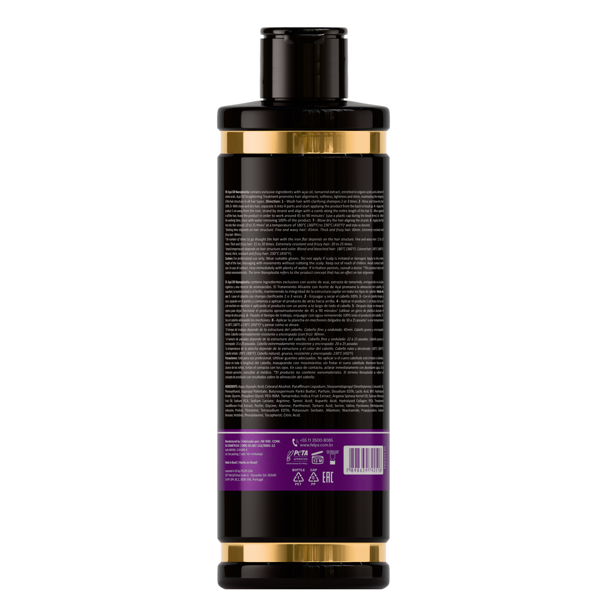 Omega Zero Acai Oil Nanoplastia Thermal Sealing offers volume reduction, hair alignment and 100% straightening. Provides shine and softness with a beautiful movement and a natural hair look. For all types of hair.